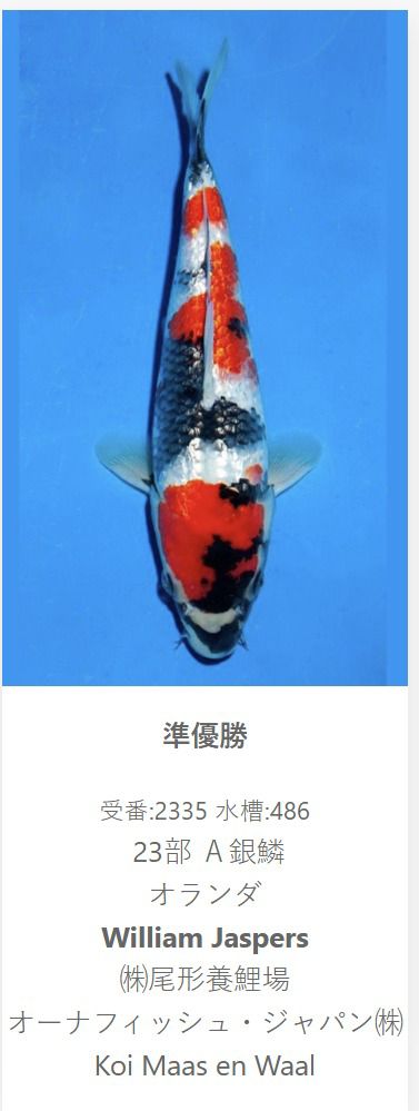 We weten uit ervaring dat het niet altijd meevalt om aan de hand van n fotootje en filmpje een Koi te selecteren en dat deze dan ook nog wint op een Koi show in Japan is dan ook helemaal geweldig!!